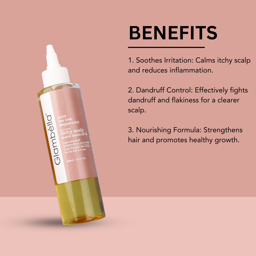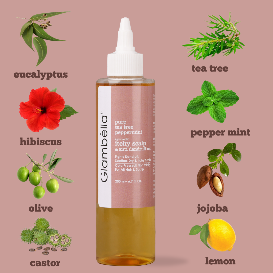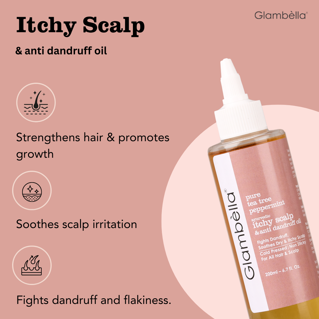 Glambella Tea Tree & Peppermint Ayurvedic Hair Oil, Anti-Dandruff, Itchy Scalp Relief, Soothes Irritation & Flakiness β 200 ml